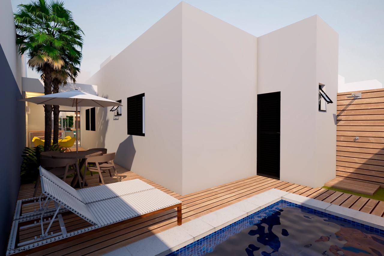 Empreendimento com obra iniciada, projeto de casas com metragem de 110 metros com 3 dormitorios sendo 1 suite, WC social, sala integrada com a cozinha, churrasqueira, piscina privativa, WC lazer, 2 vagas de garagem. 2 casas com terreno e construções maiores.
