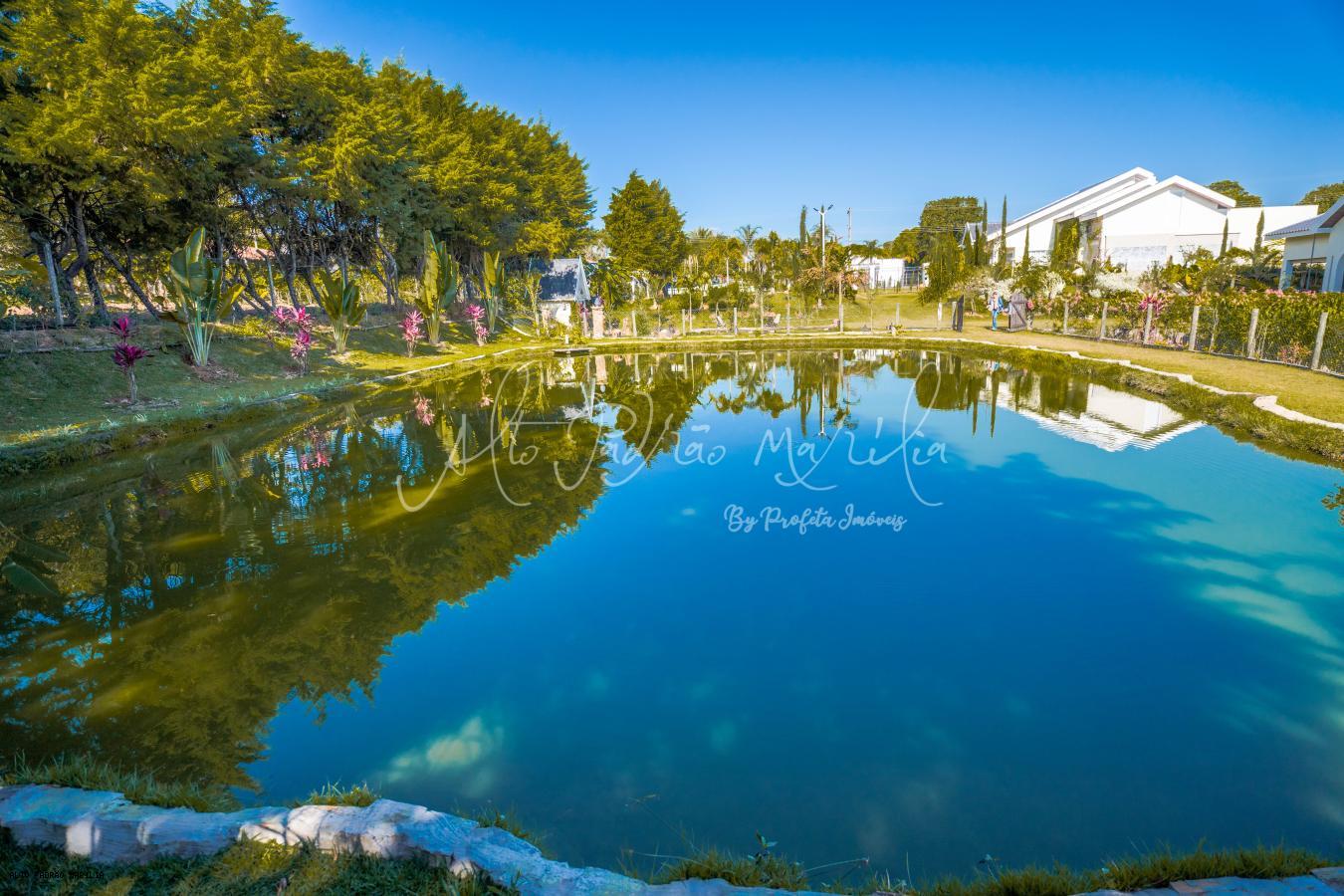 Espaço de churrasqueira, forno separado, wc na área de lazer, capela, lago com peixes, mata e muita área verde.