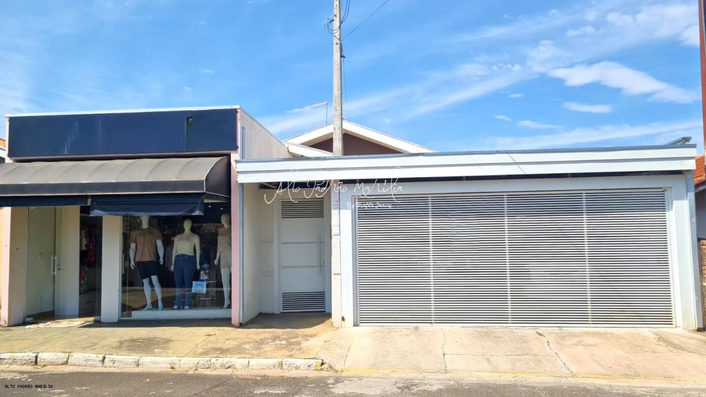 Salão comercial na parte frontal da casa, com quarto, banheiro e garagem.