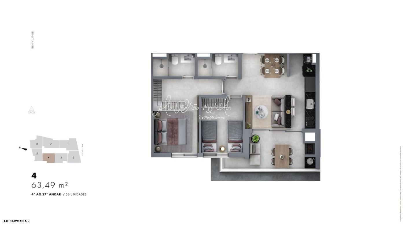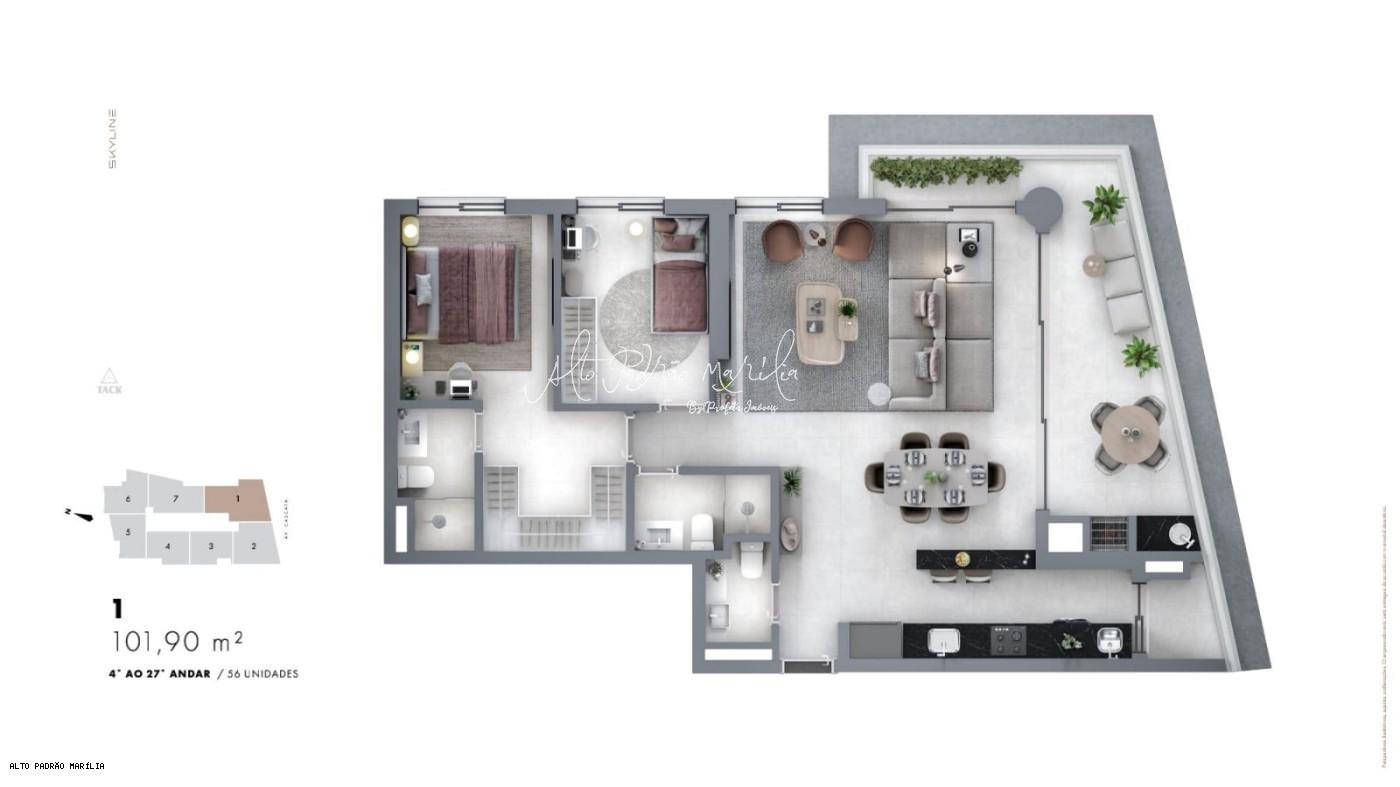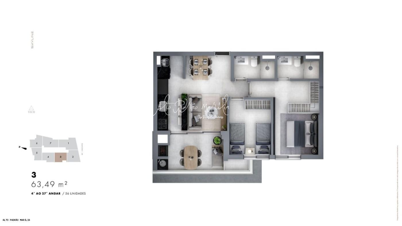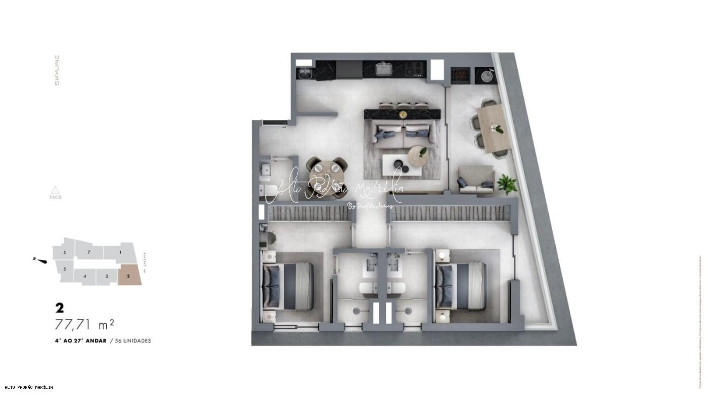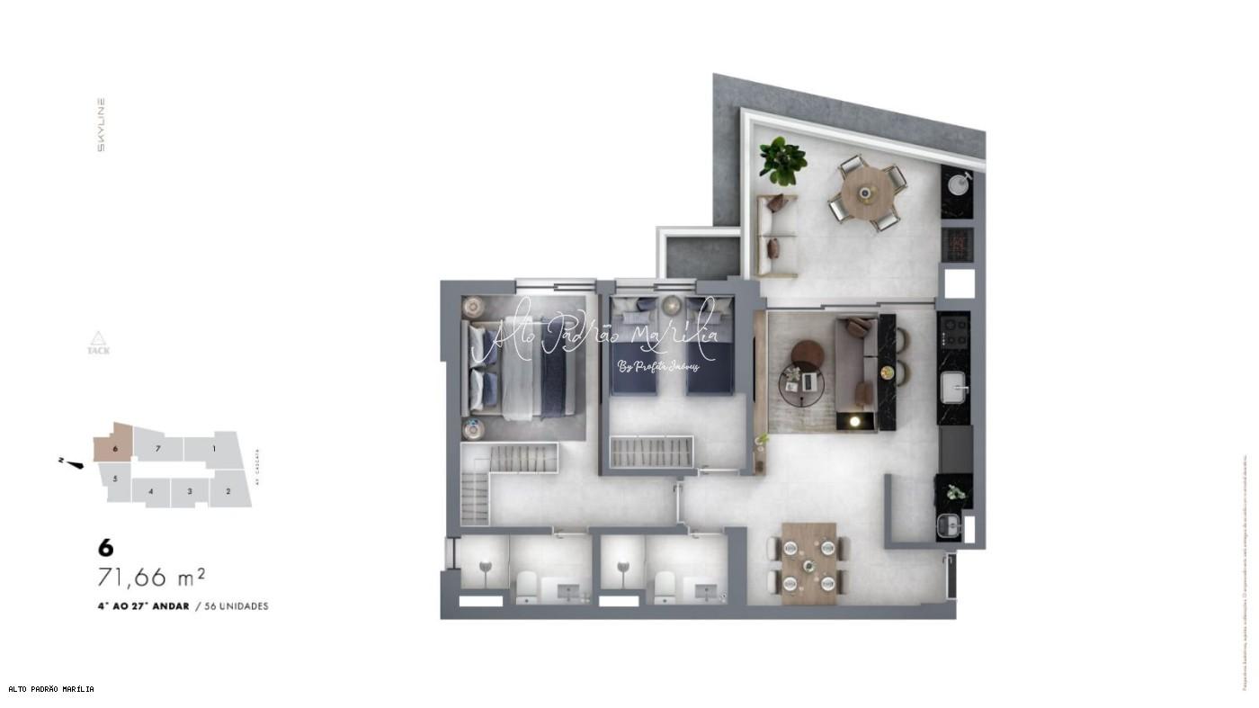 Apartamento para Venda, Condomínio Edifício Skyline, localizado na cidade de Marília / SP. - Previsão para entrega: Abril/2026.