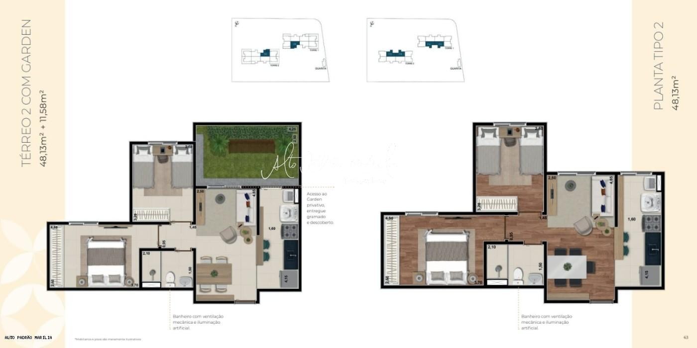 Apartamento para Venda, Condomínio Edifício Reserva Mirali, localizado na cidade de Marília / SP. Com 2 dormitórios, po...