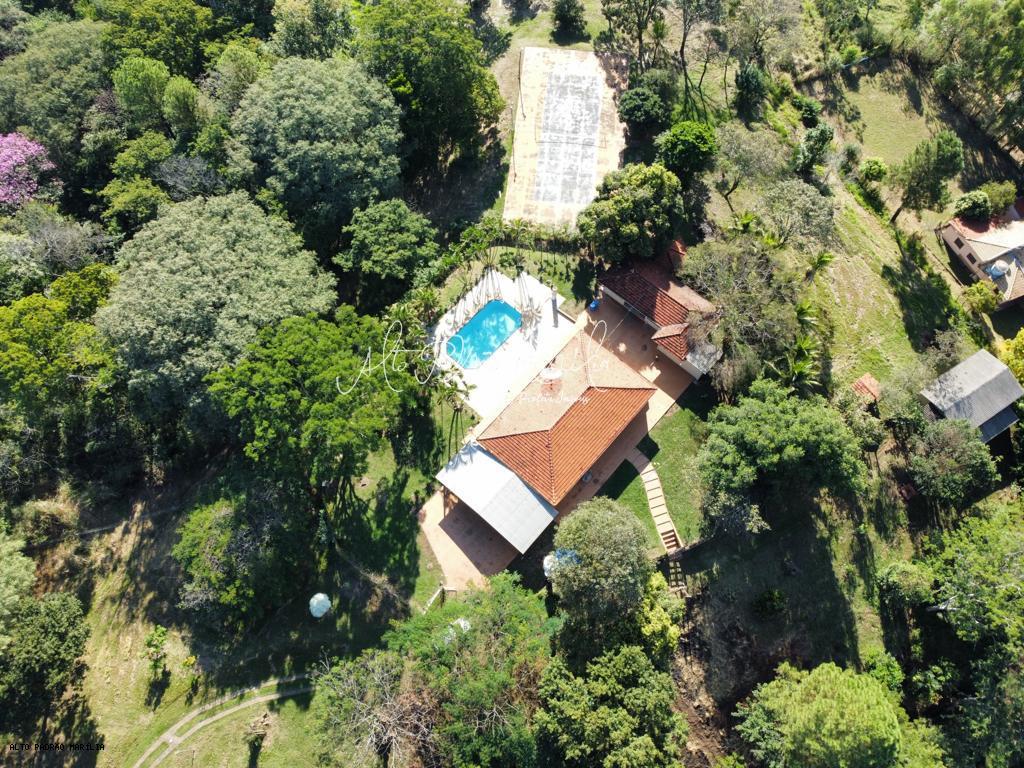 Sitio possui 02 casas, área ampla de lazer com piscina aquecida, energia fotovoltáica, poço atersiano, área com churrasqueira, quadra de tênis, lago com variedades de peixes.