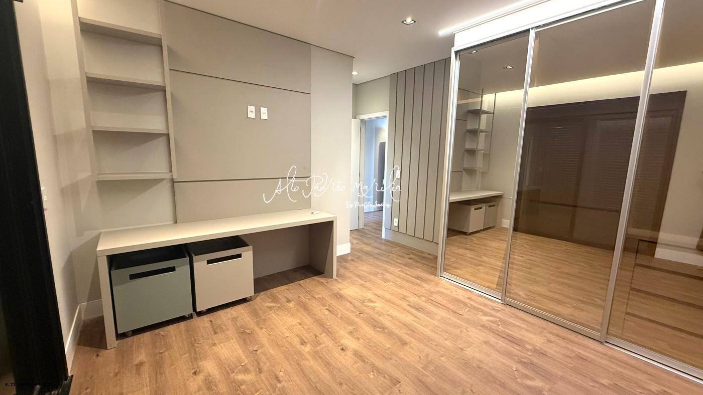 Possui 4 suítes, sendo que o andar superior contempla, um spa na suíte, lavabo, living em pé direito duplo (estar com lareira e jantar), cozinha privativa, escritório, amplo espaço gourmet com ilha, churrasqueira, forno pizza, adegas e chopeira, bwc esp. gourmet/piscina, home theater privativo, varanda, bar piscina com lareira externa, piscina com prainha e borda infinita, amplo espaço de solário, 3 vagas de garagem coberta.