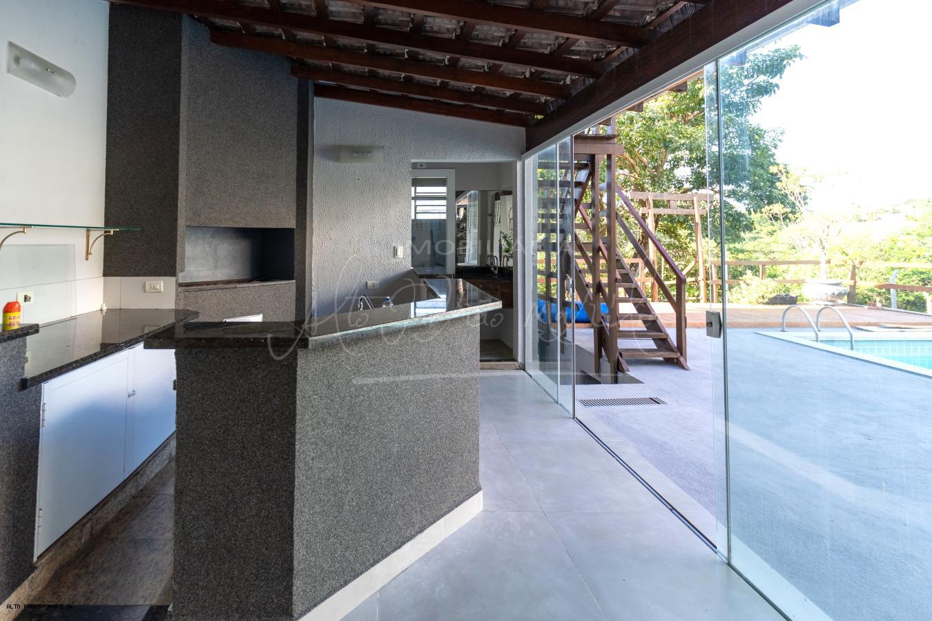 Com 5 dormitórios, sendo 5 suítes, possui 4 banheiros, sala para dois ambientes, sala de estar, jardim de inverno com cascata, cozinha estilo americano, área de serviço, quarto empregada, edícula, área de lazer com churrasqueira e piscina, salão de festas com vista para o vale, 2 vagas de garagem coberta, localizado em condomínio.